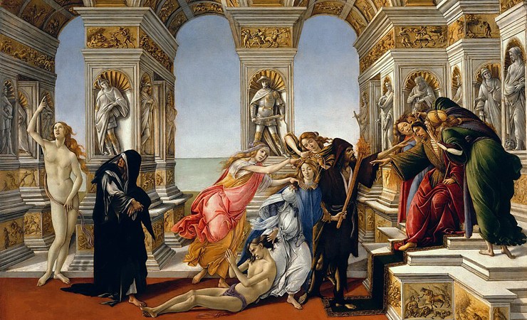 Stando ad un’autorevole interpretazione del dipinto (enigmatico e dai plurimi significati), il predicatore Girolamo Savonarola veniva indicato come la parte accusatrice delle opere realizzate dall’artista fiorentino, perché figlie di un’arte profana, leggiadra, un po’ lasciva, che veniva molto biasimata dal vento moralizzatore di tutti i seguaci di Savonarola.